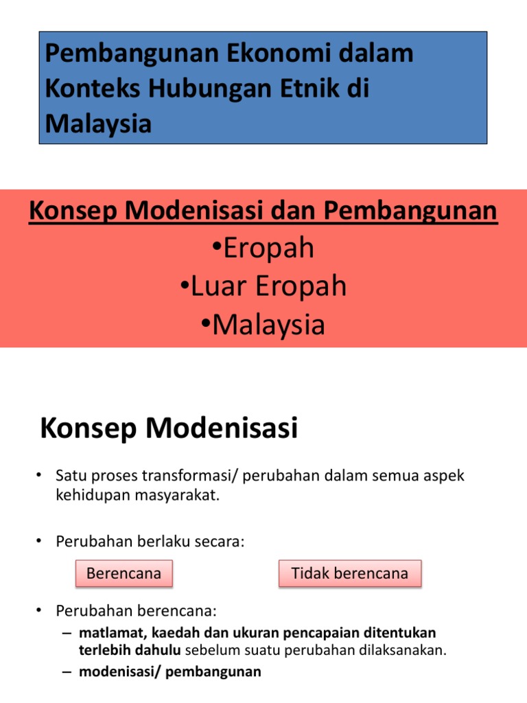 Related : Pembangunan Ekonomi Di Malaysia - Pembangunan ekonomi dalam konteks hubungan etnik di malaysia— presentation transcript 11 4.3 modenisasi di malaysia malaysia memulakan perjalanan modenisasi dengan kehadiran kolonial inggeris..